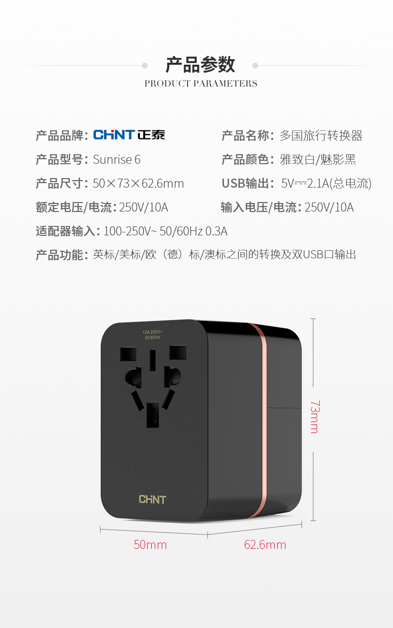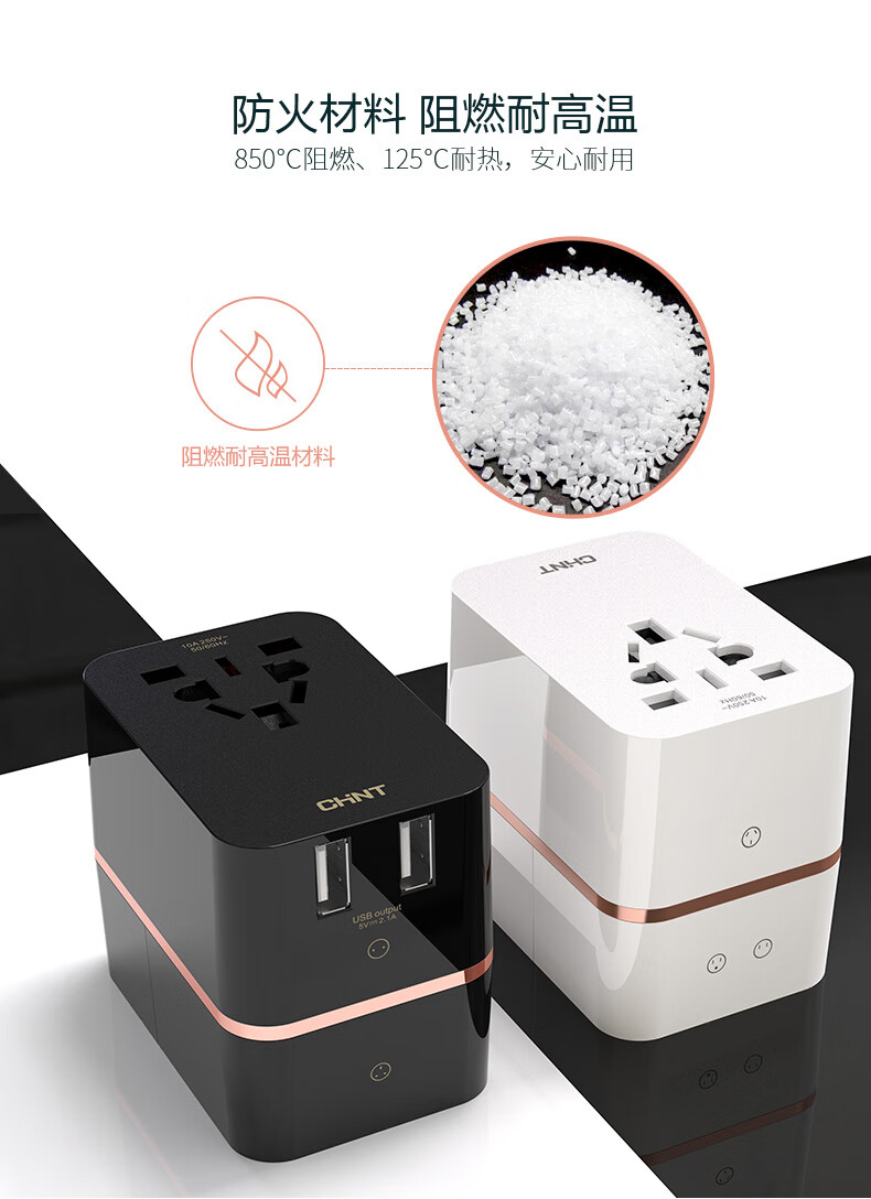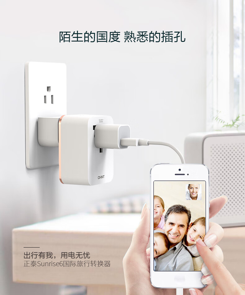 正泰(CHNT)全球通用国际旅行USB插座电源转换器白色带USB 自营