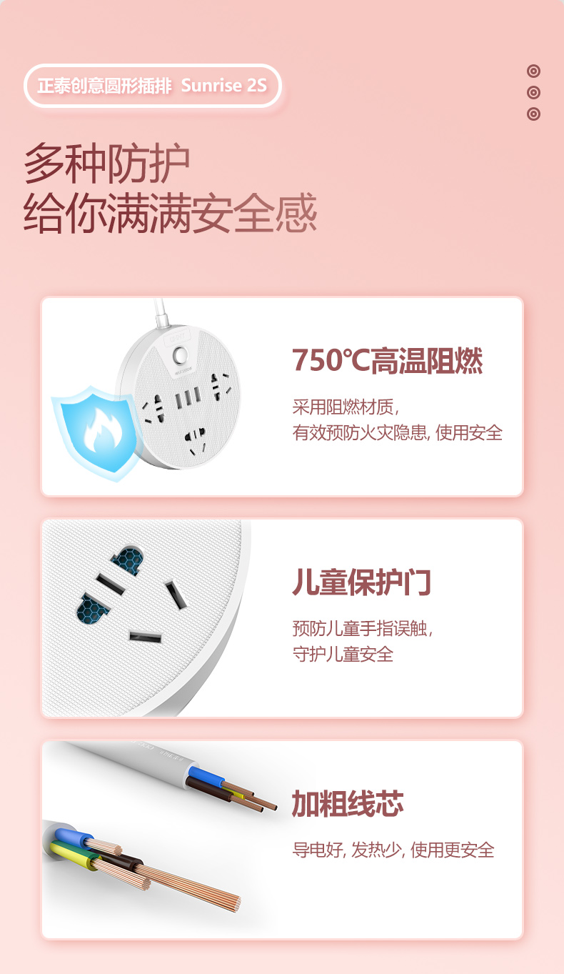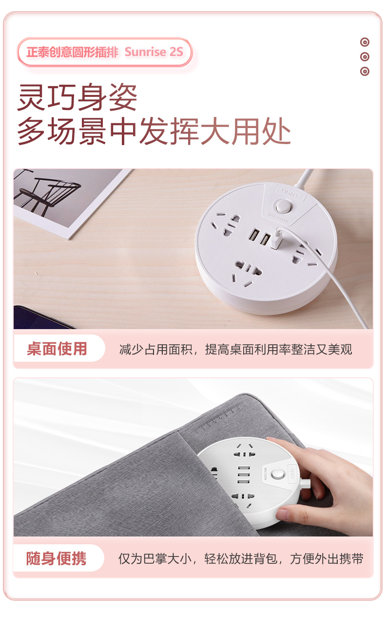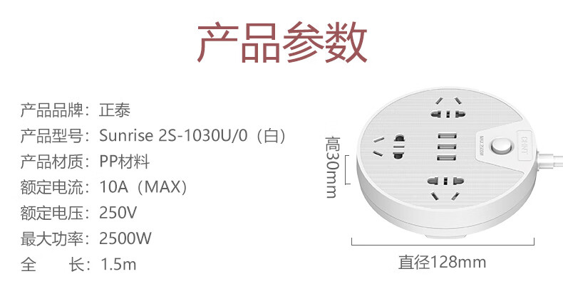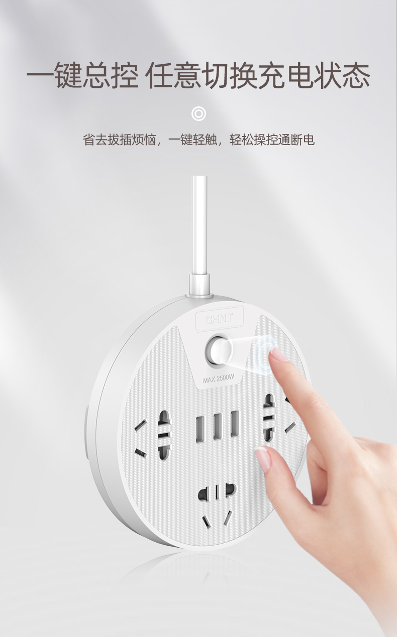 正泰插座插排多功能家用圆形USB排插宿舍学生插板带线接拖插线板Sunrise2S-1030U/06插位+3USB白色-1.5m 自营