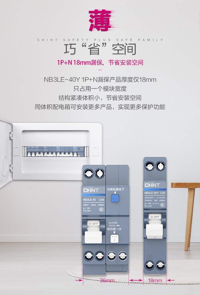 正泰(CHNT)空气开关漏电保护开关断路器空开小型家用NB3LE-401P+NC40 自营