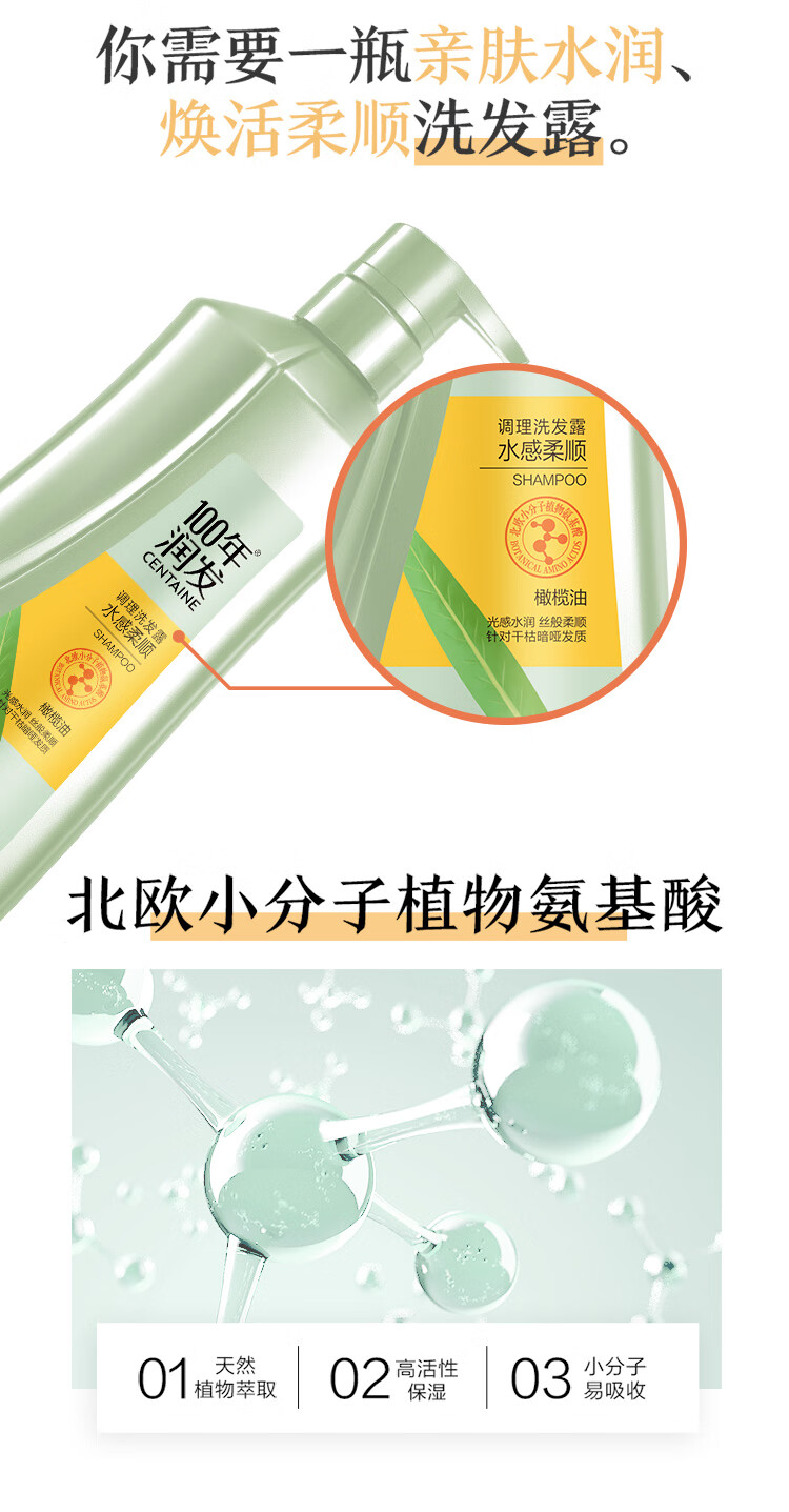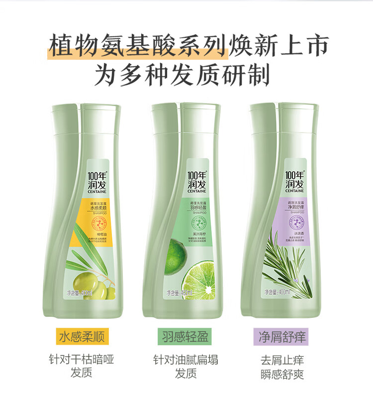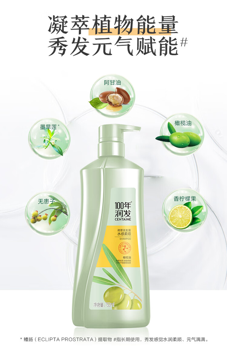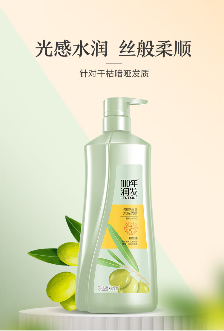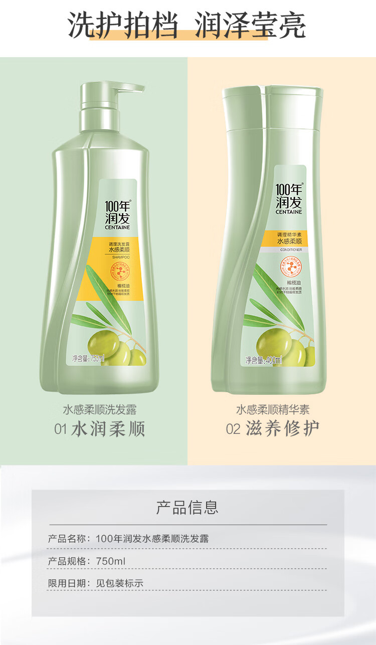 100年润发洗发水(水感柔顺、羽感轻盈)调理氨基酸男女士洗发露液头水膏百年润发750ML(一箱8瓶,整箱售) 自营