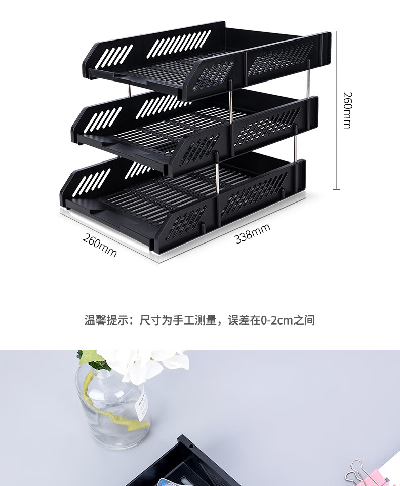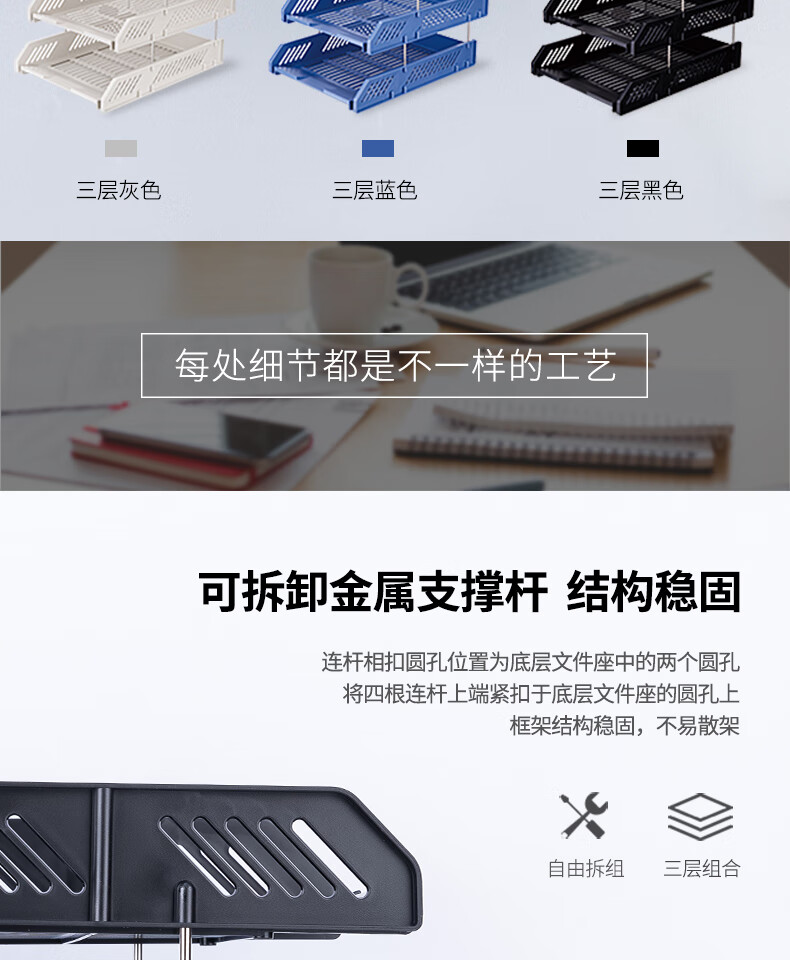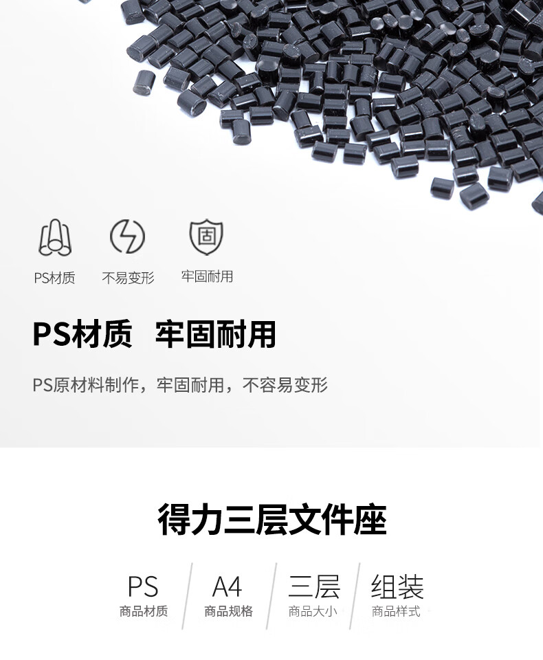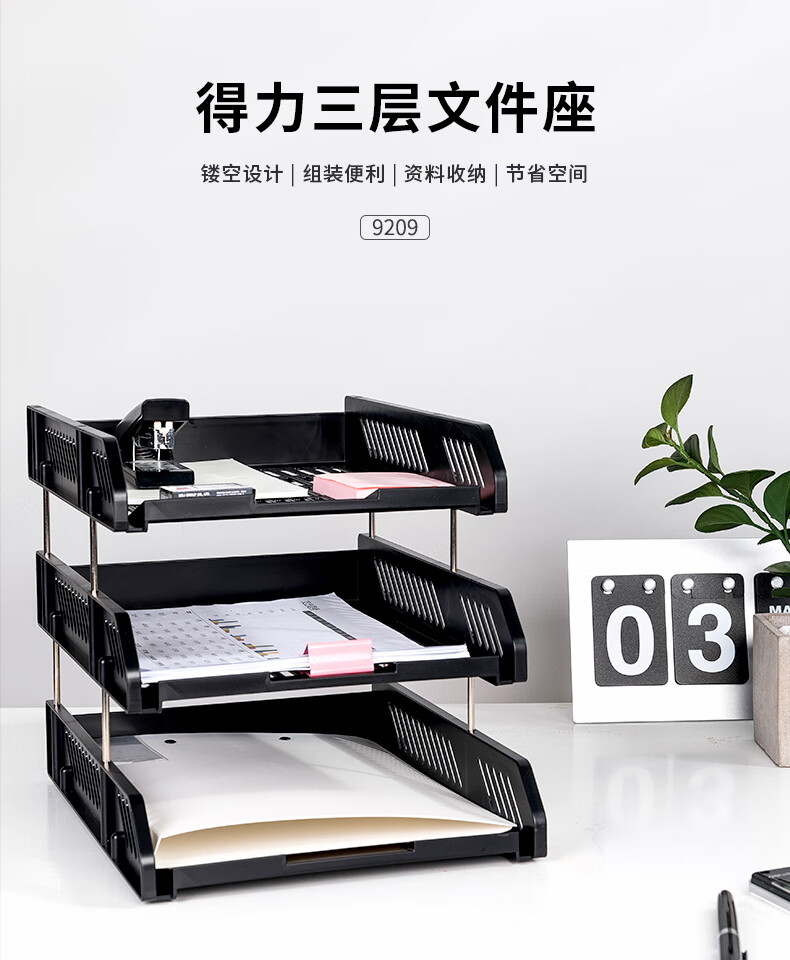 得力(deli)商务四层金属文件盘 托盘可前后移动 高质文件座 黑9184 自营