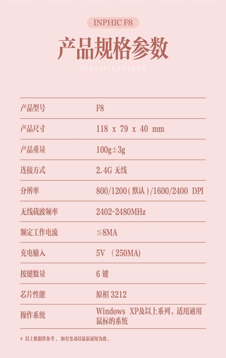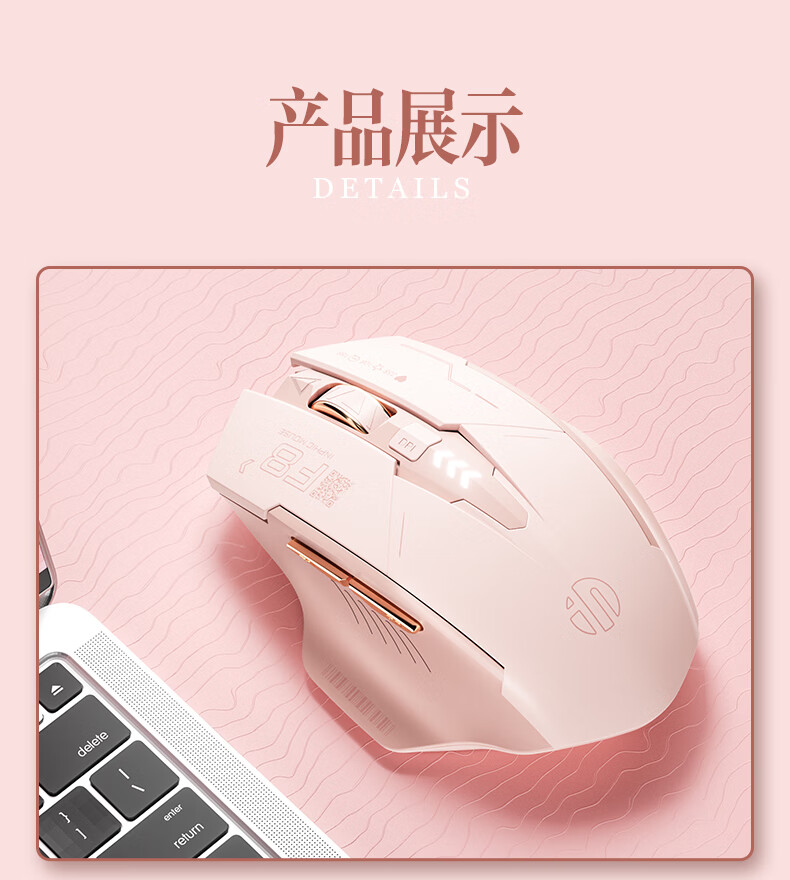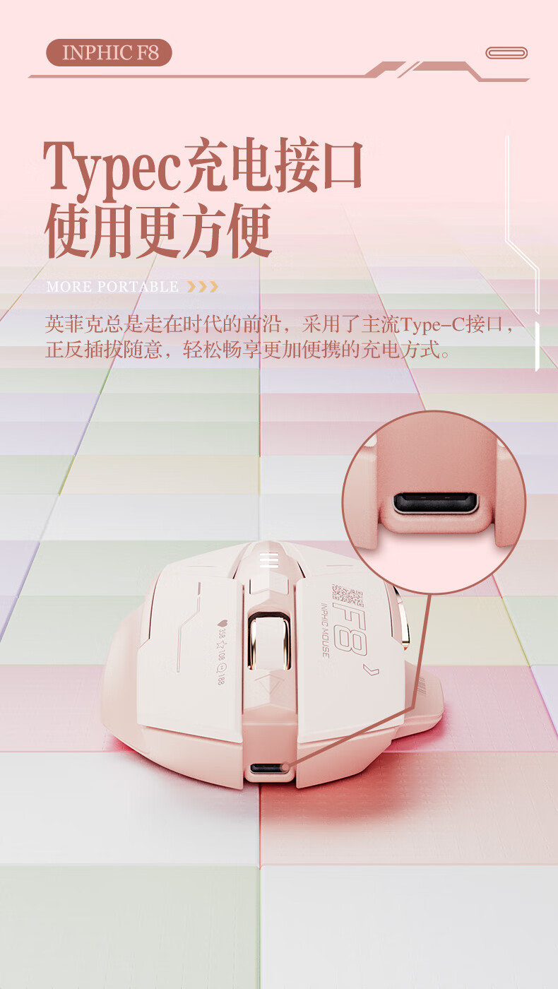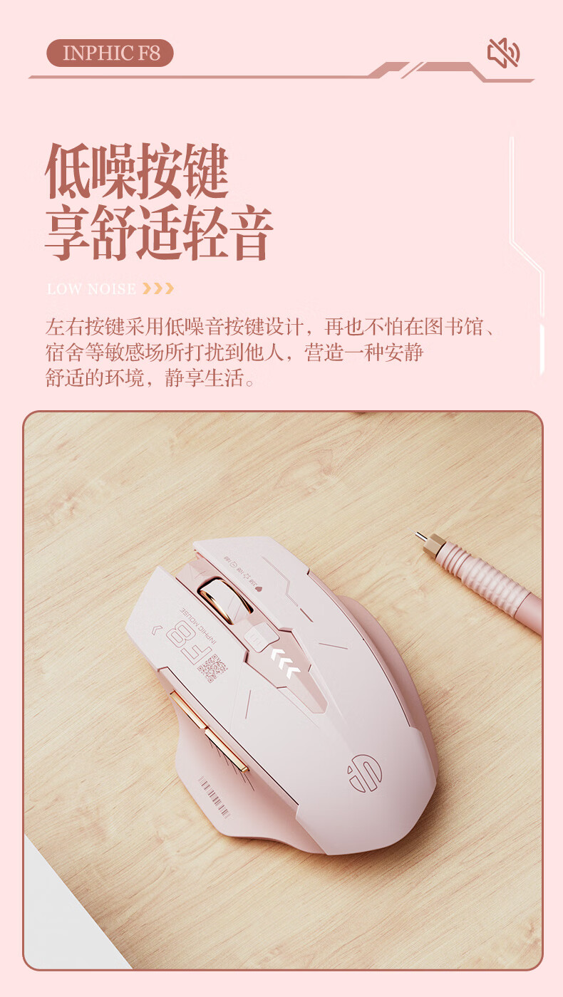 英菲克(INPHIC)F8无线蓝牙鼠标充电女生办公静音便携人体工学适用于惠普华硕华为笔记本电脑ipad平板轻音舒适【无线2.4G+女生高颜值+对称设计】F8奶茶色 自营