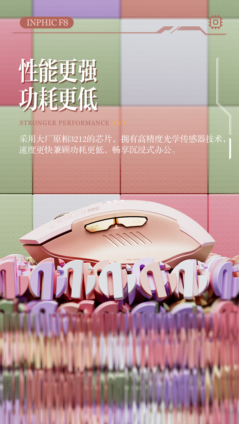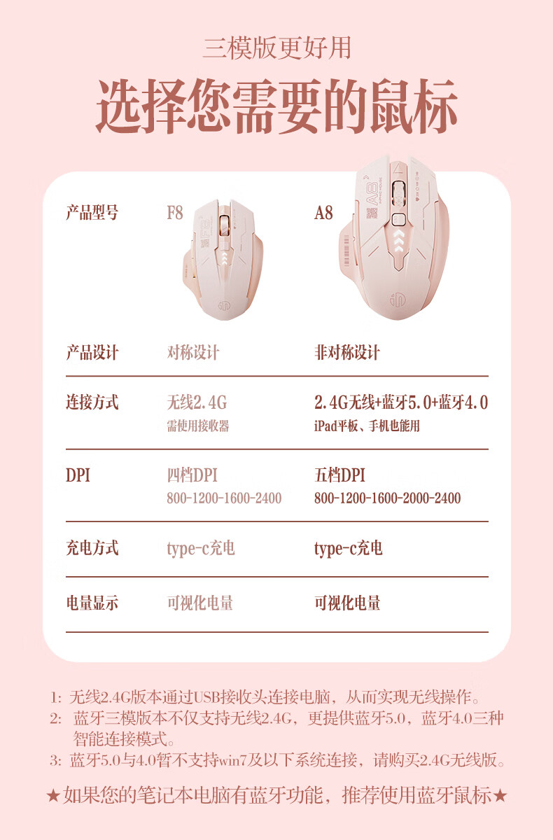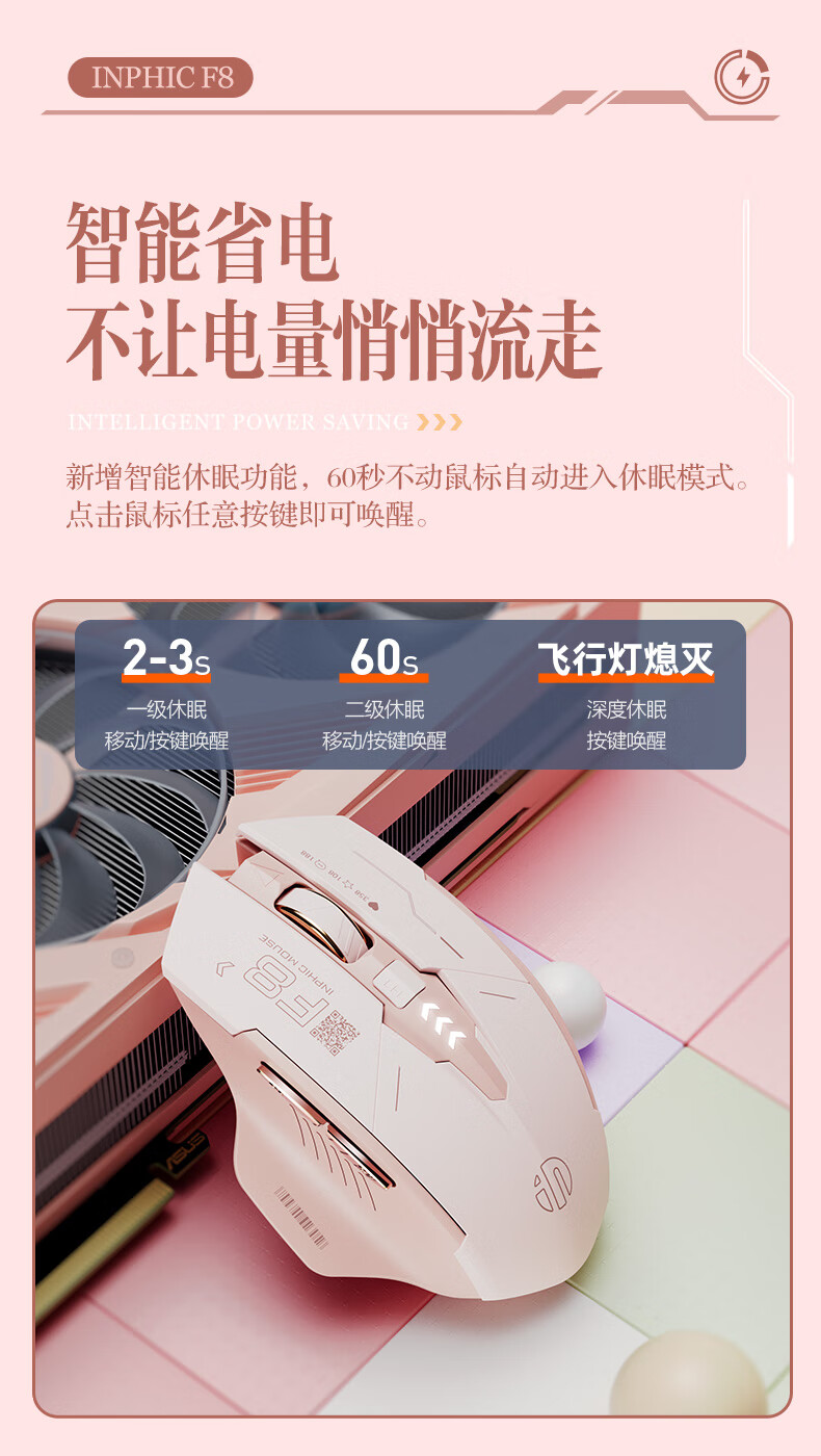 英菲克(INPHIC)F8无线蓝牙鼠标充电女生办公静音便携人体工学适用于惠普华硕华为笔记本电脑ipad平板轻音舒适【无线2.4G+女生高颜值+对称设计】F8奶茶色 自营