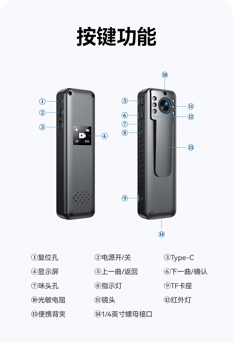 警蓝伟业DSJ-M21CHD工作记录仪4K高清夜视摄像机小型随身佩戴工作记录仪512G 自营
