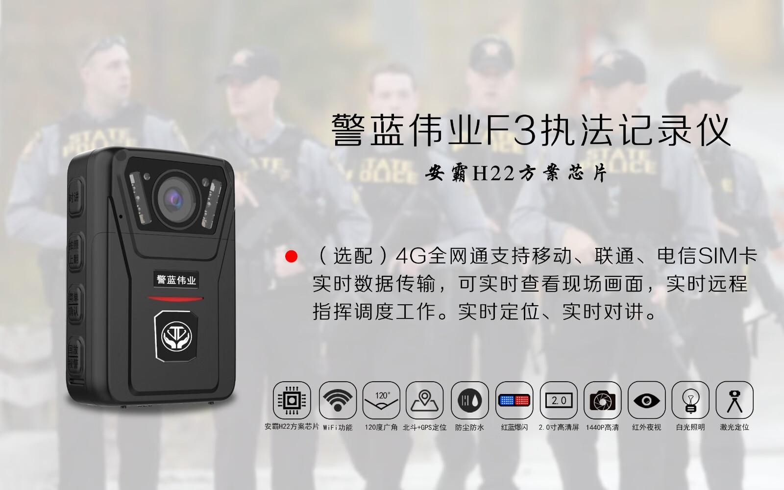 警蓝伟业DSJ-F3执法仪1296P高清红外夜视专业微型便携音视频现场执法仪128G官方标配 自营