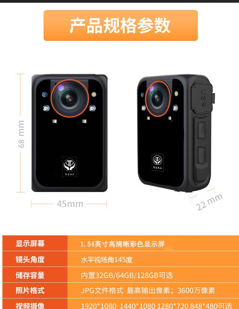 警蓝伟业工作记录仪DSJ-D8CHD高清红外夜视随身便携视音频工作记录仪128G 自营
