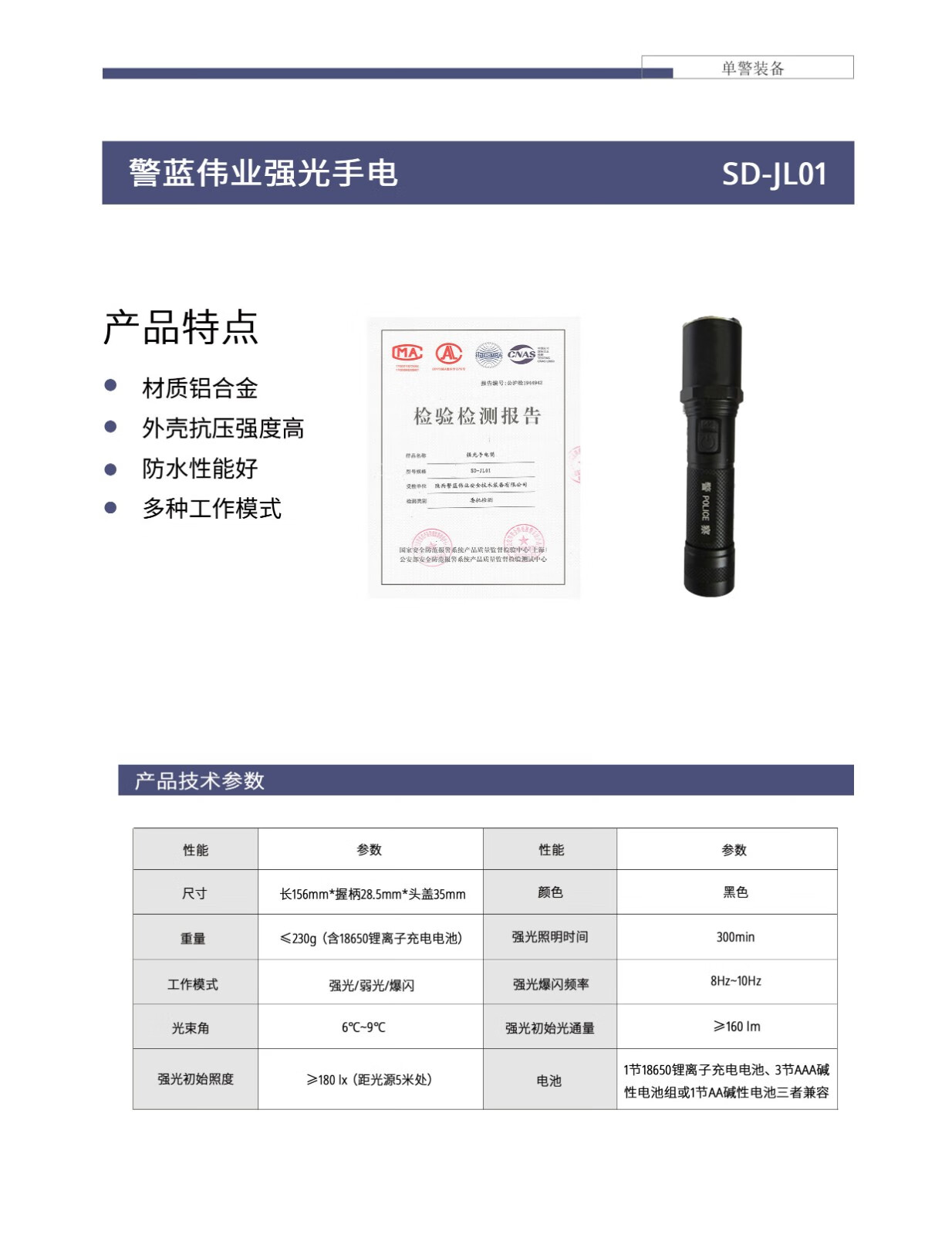 警蓝伟业强光手电筒LED超亮远射车载可充电锂电池防水防身黑色 自营