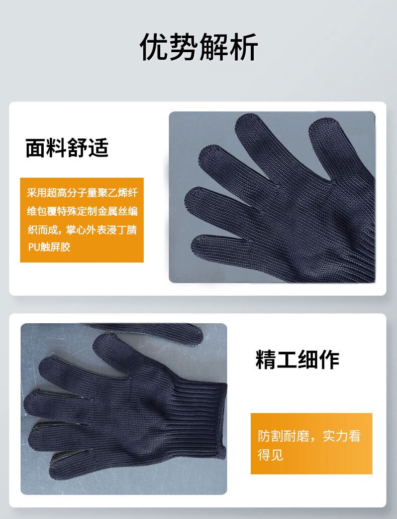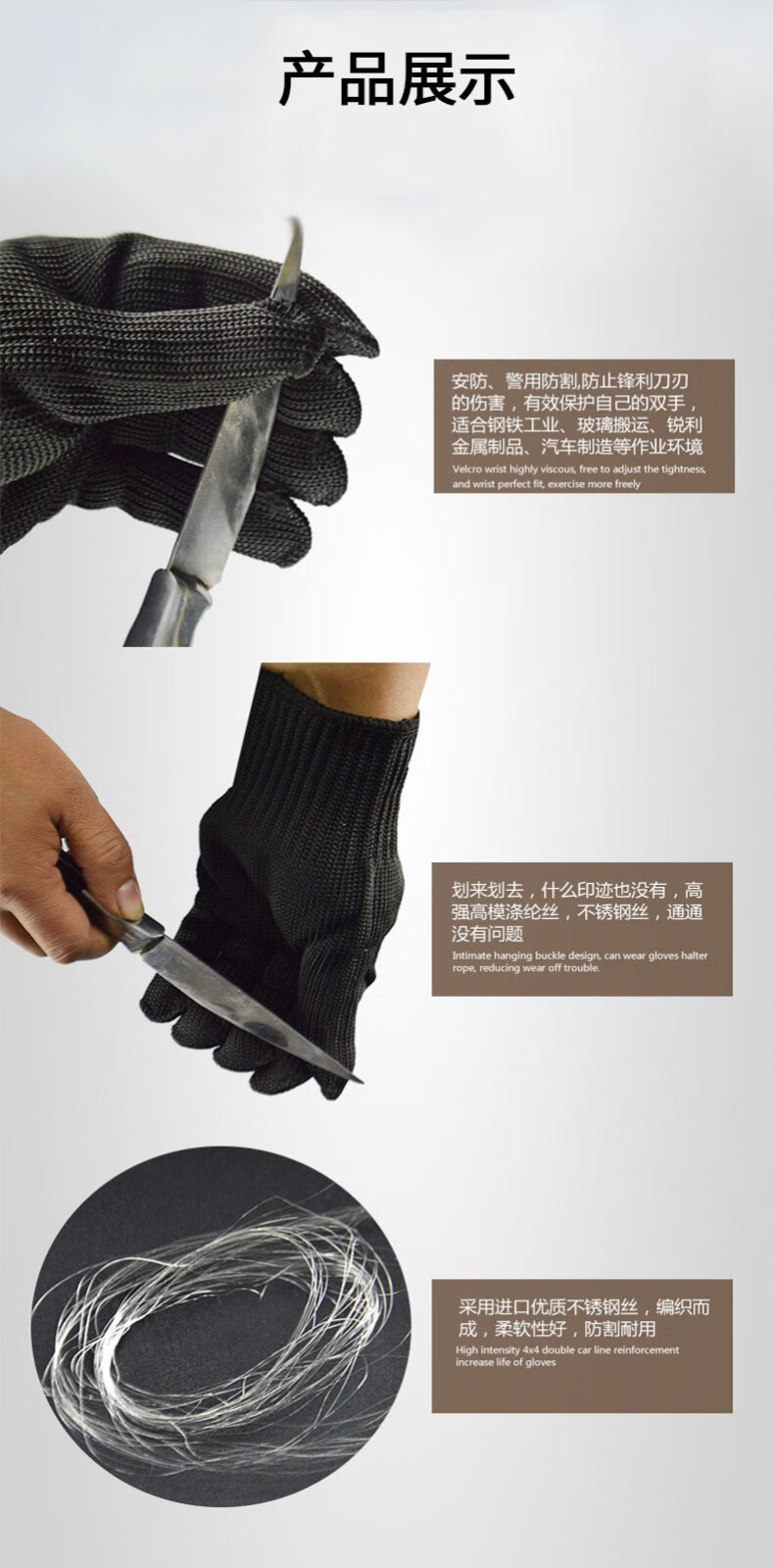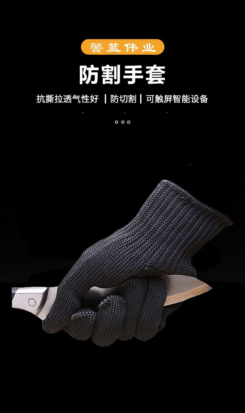 警蓝伟业防割手套JL-FG01抗划伤保安器材户外逃生钢丝防护防玻璃耐刀切割黑色 自营