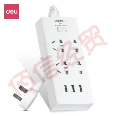 得力(deli)插座/插线板/插排/排插/usb接口办公用品18281(2+2插孔)+3USB2米 自营