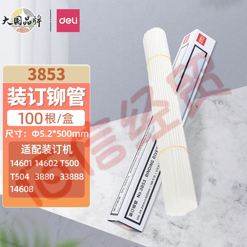 得力(deli)财务装订机专用透明装订铆管耗材系列100支/盒3853铆管Φ5.2*500mm100根/盒 自营