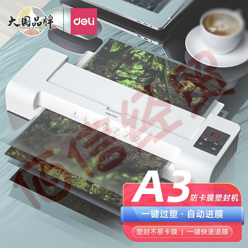 得力(deli)照片塑封机办公家用过塑机相片覆膜机热裱照片文件多尺寸压膜过塑机A3五档可调防卡膜结构14318 自营