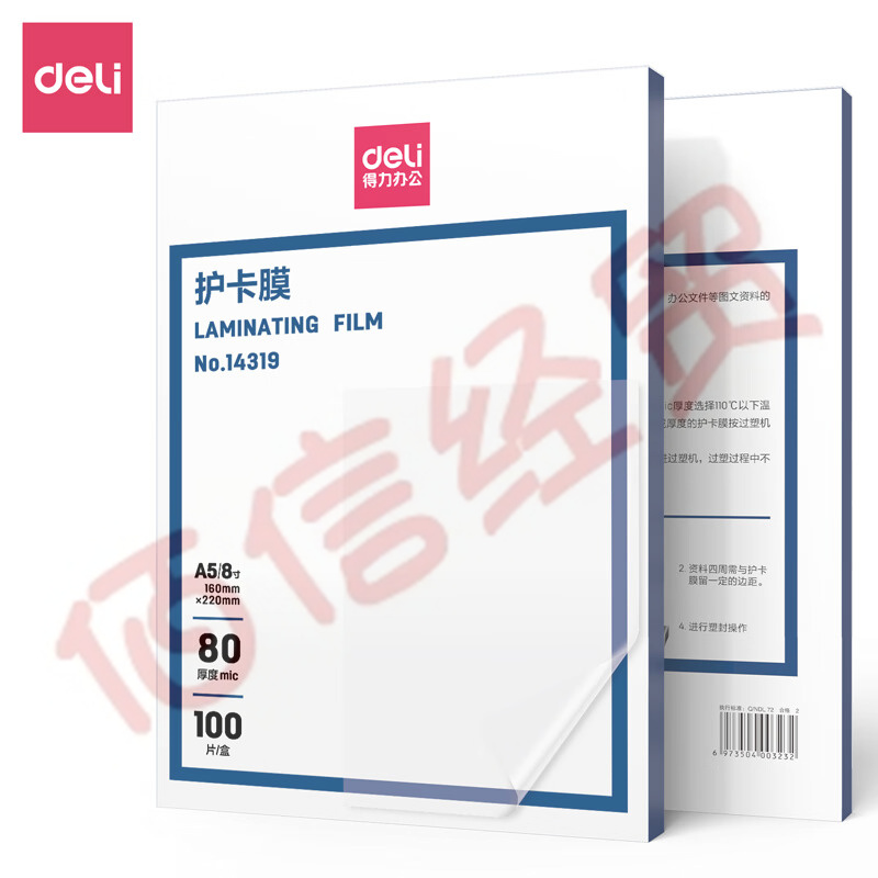 得力14319护卡膜8寸厚度80mic(透明白)(100片/盒)(定制) 自营