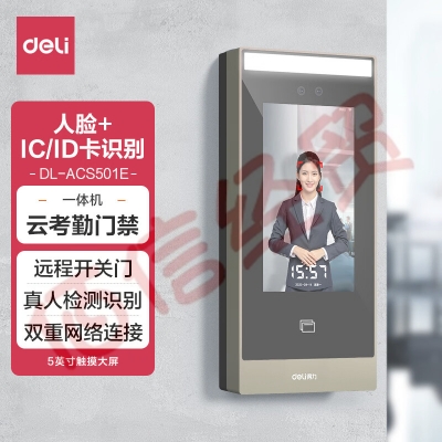 得力考勤门禁一体机动态人脸+IC/ID卡识别智能云考勤手机/PC端远程控制开关门门禁机DL-ACS501E 自营
