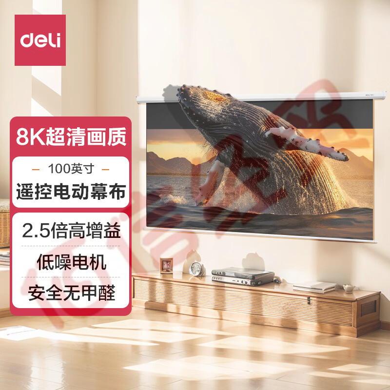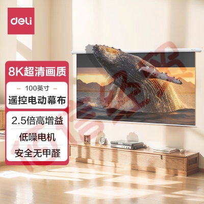 得力(deli)100英寸16:9遥控电动8K超清光子幕布3.0抗卷边版2.5倍高增益(适配坚果极米当贝)50452S 自营