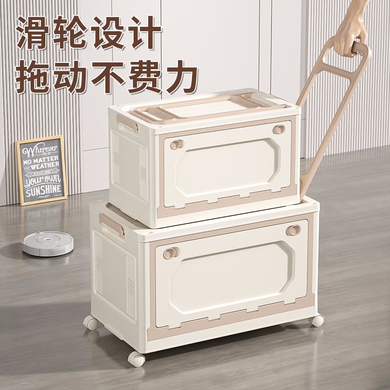 拉杆书本收纳箱卡其色-大号【带万向轮+拉杆】 1个装