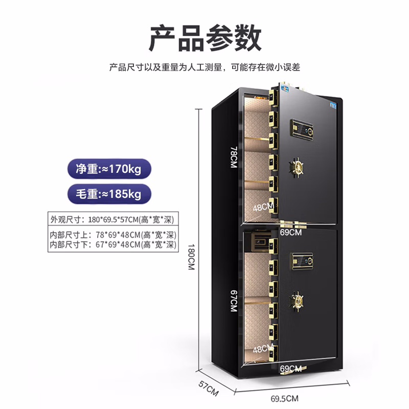 虎牌保险柜家用办公大型指纹密码全钢防盗双门入墙财务专用保险箱 180cm 咖啡金 自营