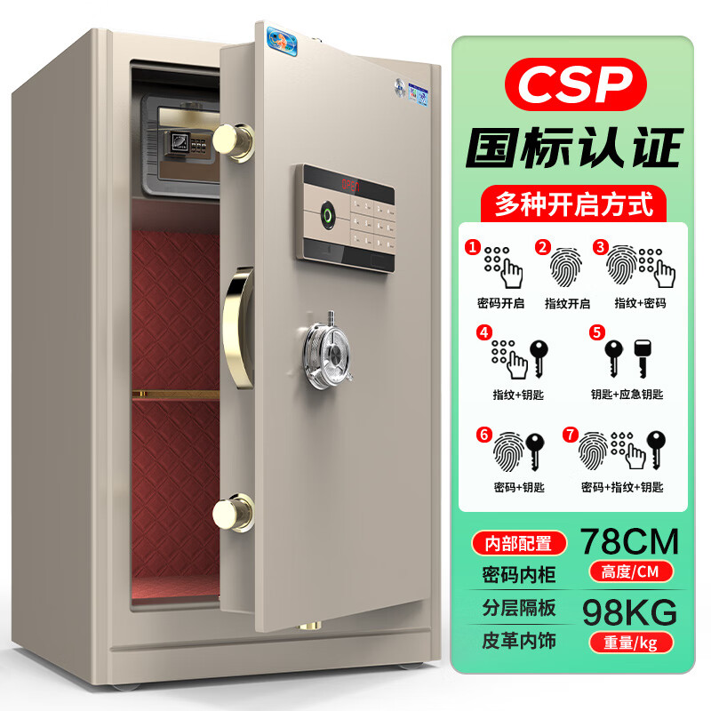 虎牌保险柜家用小型国标认证指纹密码办公保险箱加厚全钢防盗财务专用夹万保密柜 灵耀系列 78cm 自营