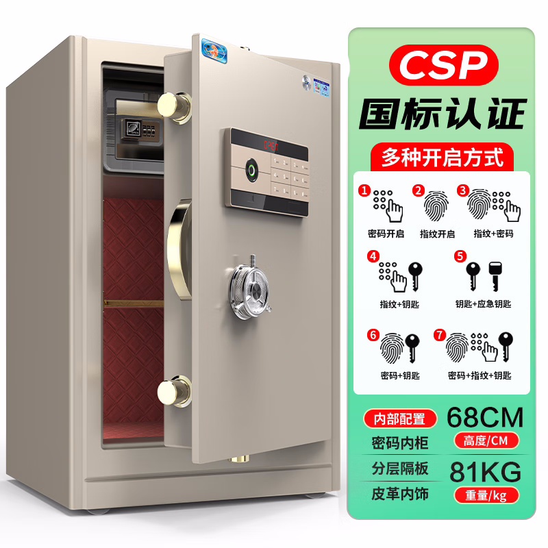 虎牌保险柜家用小型国标认证指纹密码办公保险箱加厚全钢防盗财务专用夹万保密柜 灵耀系列 68cm 自营