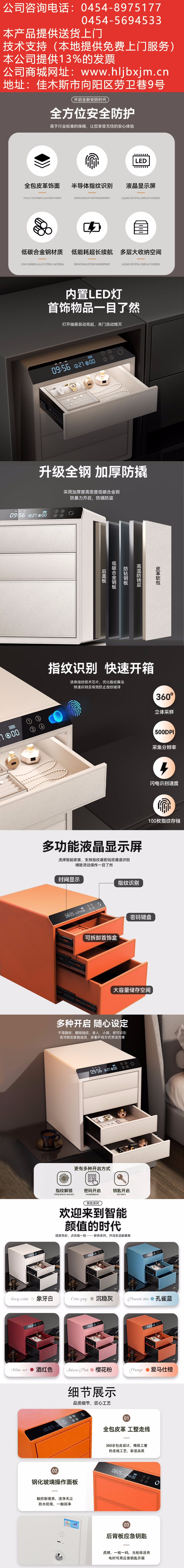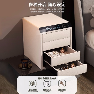 虎牌保险柜家用小型指纹密码保险箱皮革首饰盒智能收纳箱蓝牙全钢防盗抽屉柜保管柜 沉稳灰(三层增高) 自营