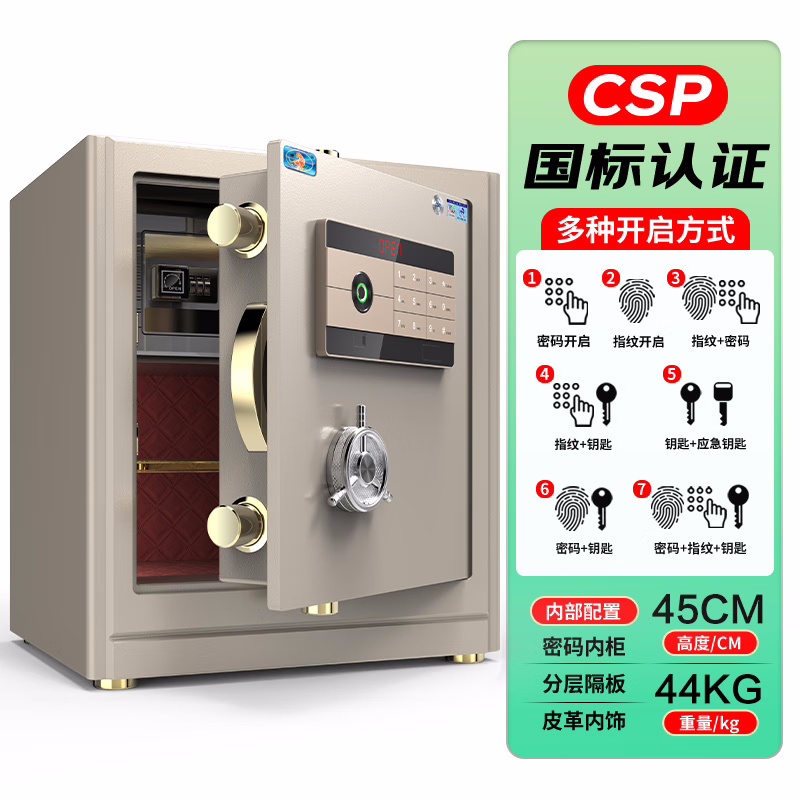 虎牌保险柜家用小型国标认证指纹密码办公保险箱加厚全钢防盗财务专用夹万保密柜 灵耀系列 45cm 自营