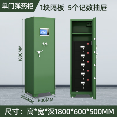 汇云星智能枪柜防爆防盗密码锁钢制器械柜军绿色单门一隔板+5记数抽屉 自营