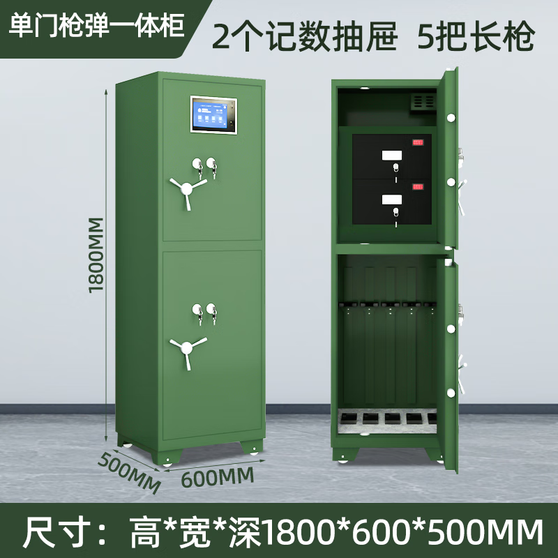 汇云星智能枪柜防爆防盗密码锁钢制器械柜军绿色上下单门内含2记数抽屉 自营