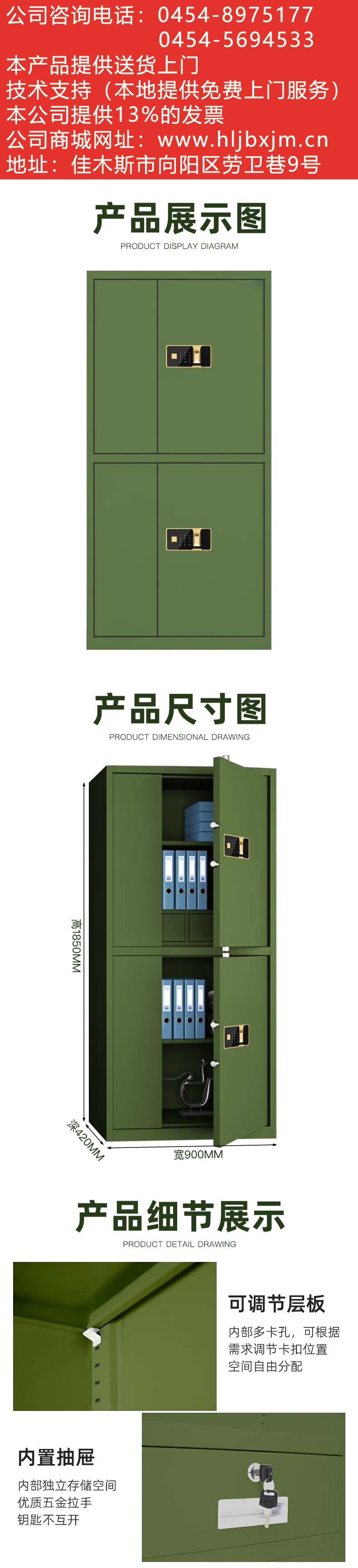 汇云星保密柜通双节带斗军绿色指纹锁 自营