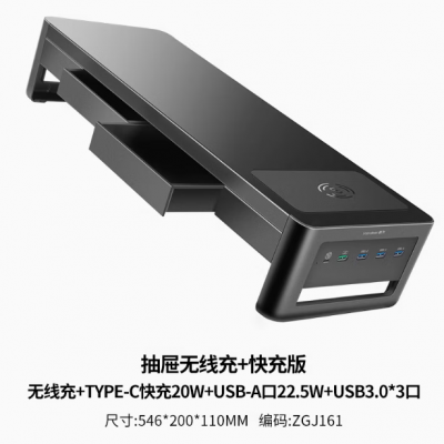 电脑显示器增高架抽屉无线充USB扩展电桌面抬高显示屏幕托架键盘收纳置物架抽屉无线充 自营