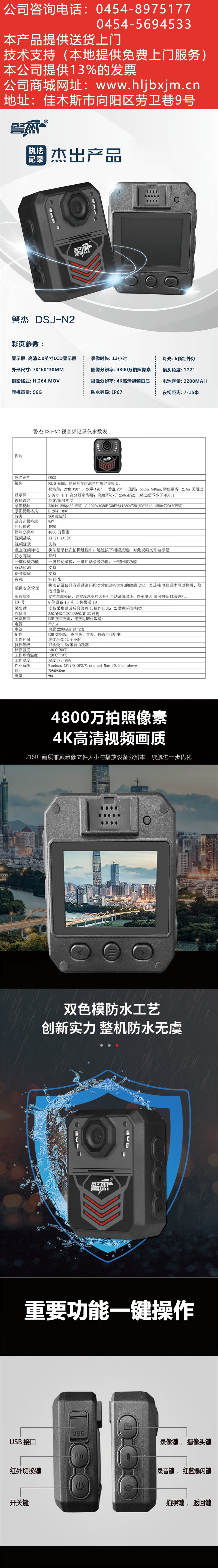 警杰DSJ-N2执法记录仪4800万像素红蓝爆闪2200mAh毫安视音频记录 续航13H 512GB存储卡 自营