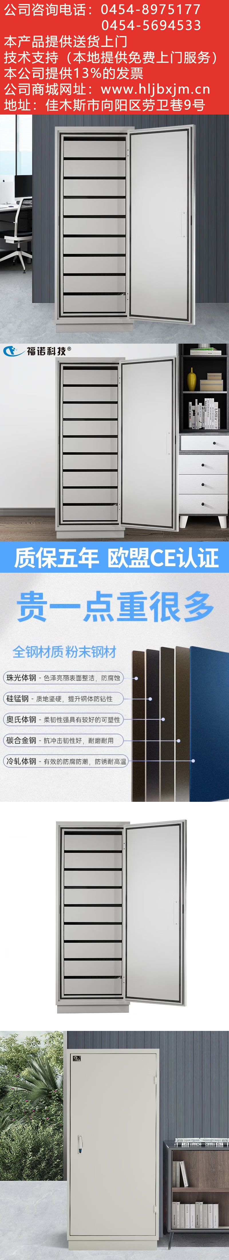 5、本系列产品出厂时均内配置吸湿剂,且密封性能良好,当环境湿度较高时库房内还应配备去湿装置。产品具有一定的防潮功能,用户存取资料后应及时关闭柜门,保持防磁柜处于密封状态。
