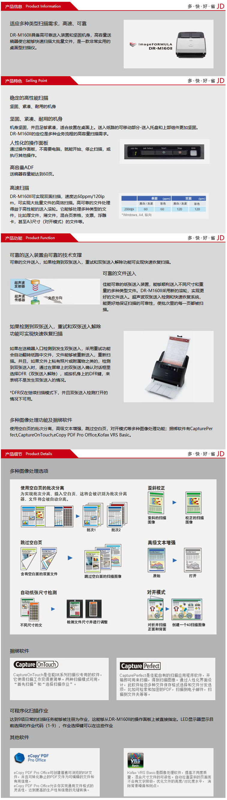 佳能(Canon)DR-M160II A4幅面专业高速文件扫描仪 自营