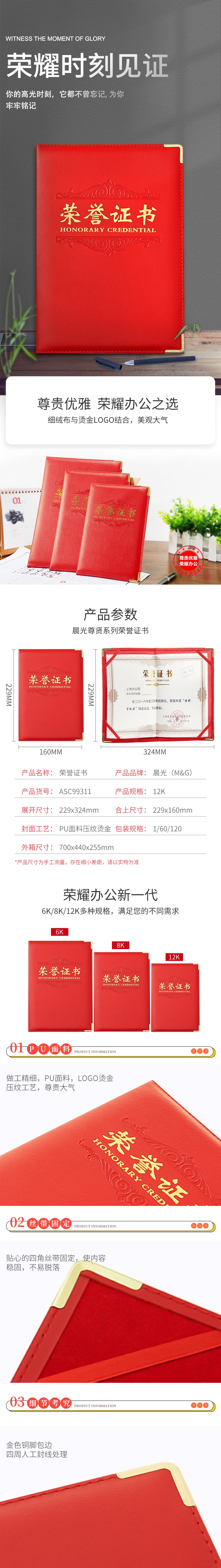 晨光尊爵PU荣誉证书12K ASC99312 自营