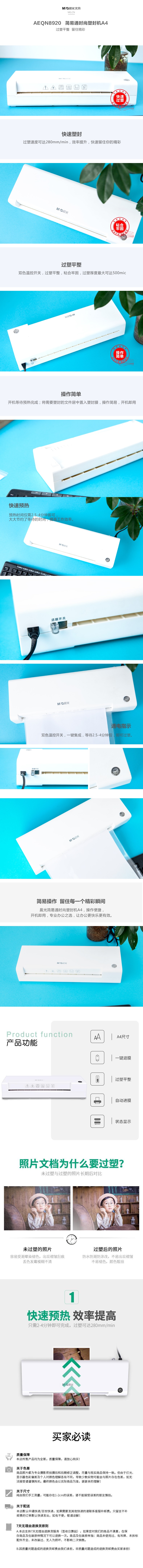 晨光简易通时尚A4塑封机AEQN8920 自营