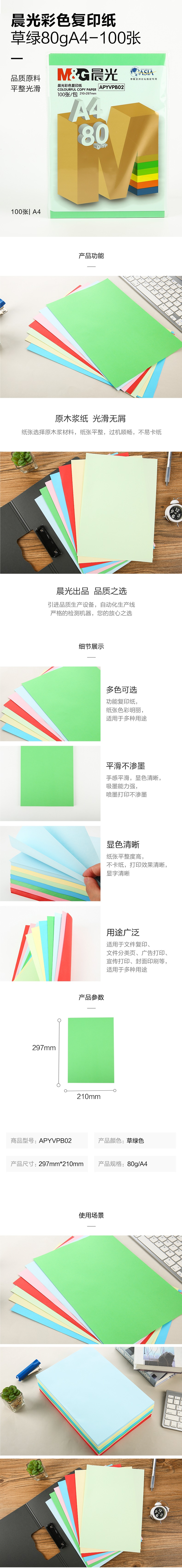 晨光彩色复印纸草绿80gA4-100张APYVPB0276 自营