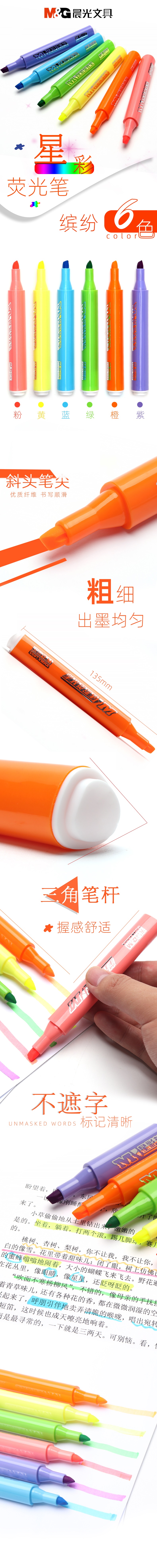 晨光星彩荧光笔蓝AHMV7603 6支装 自营