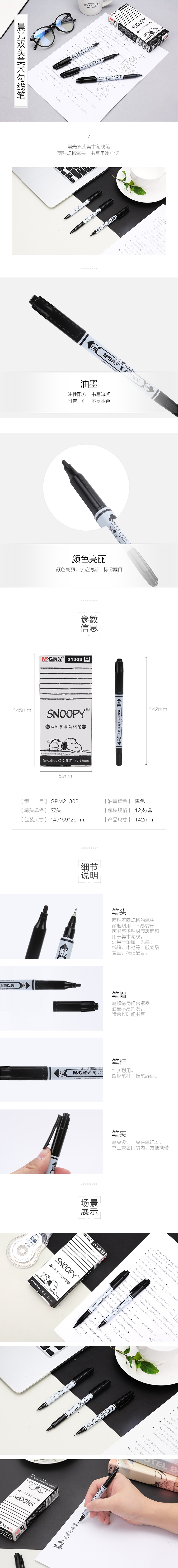 晨光记号笔史努比海洋风SPM21302红双头 12支/盒 自营