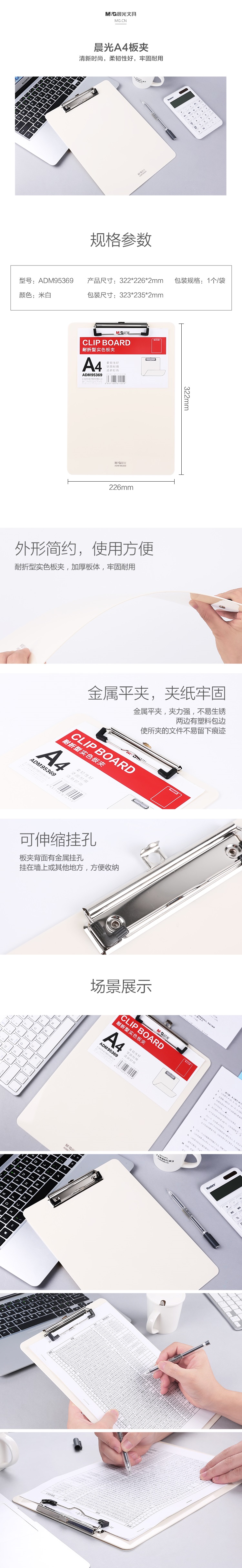 晨光耐折型实色书写板夹A4(粉白)ADM95369N1 自营