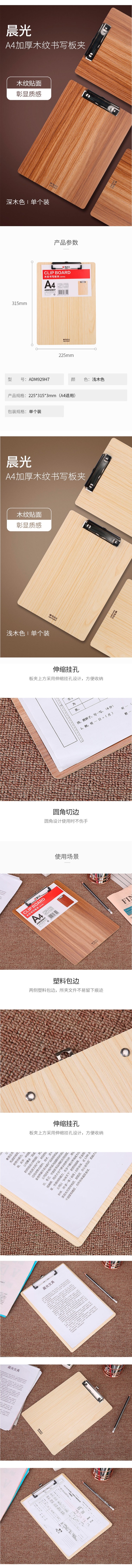 晨光木纹书写板夹A5深色ADM929H8 自营