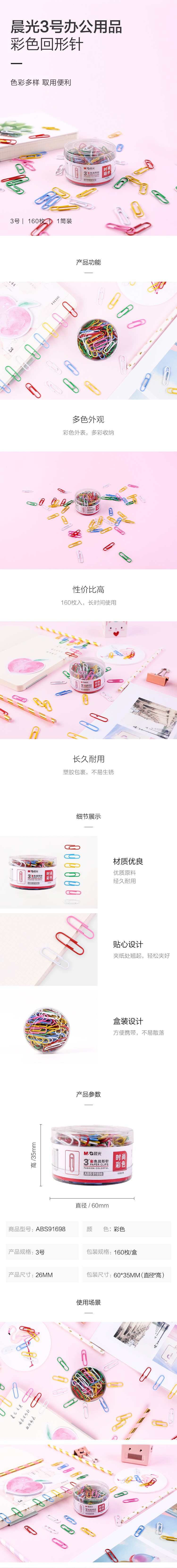 晨光办公用3号彩色回形针PVC筒装ABS91698 自营