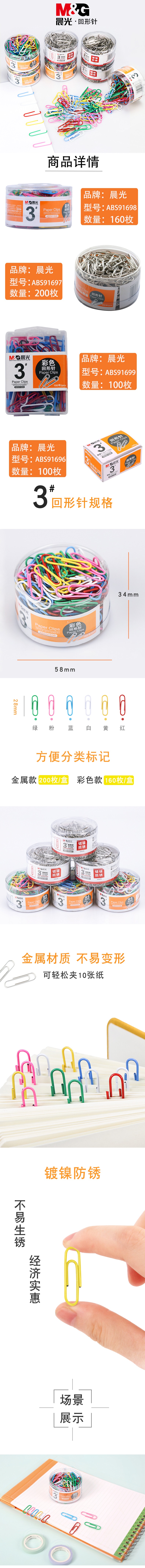 晨光办公用3号彩色回形针PP盒装ABS91699 自营