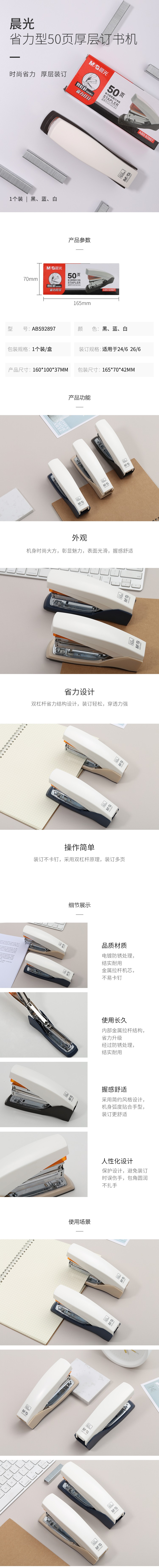 晨光省力型厚层订书机50页ABS92897 自营