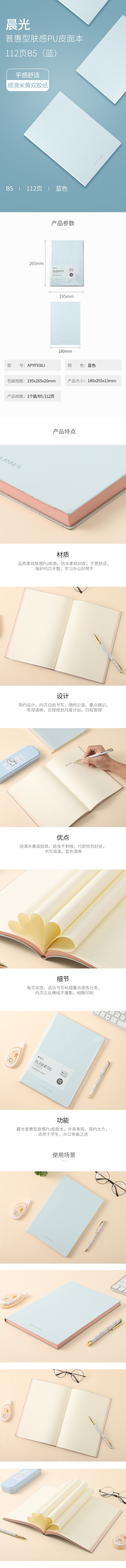 普惠型肤感PU皮面本112页B5(蓝) 自营