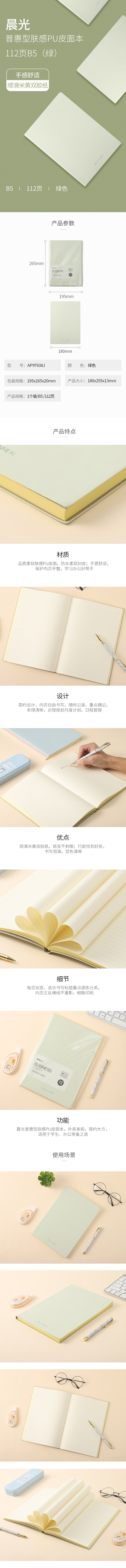 普惠型肤感PU皮面本112页B5(绿) 自营