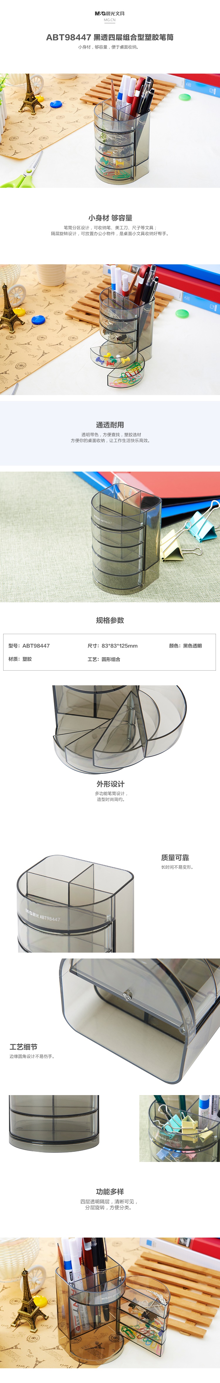 晨光黑透四层组合型塑胶笔筒ABT98447 自营