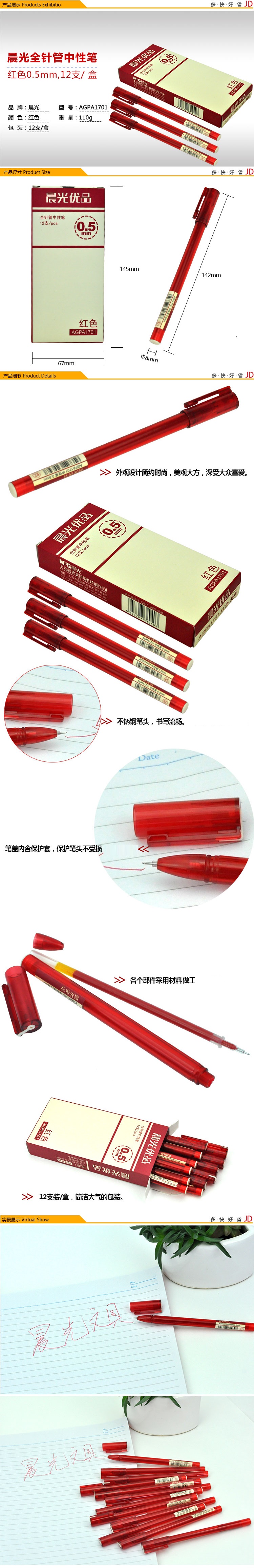 晨光中性笔优品AGPA1701红0.5 自营