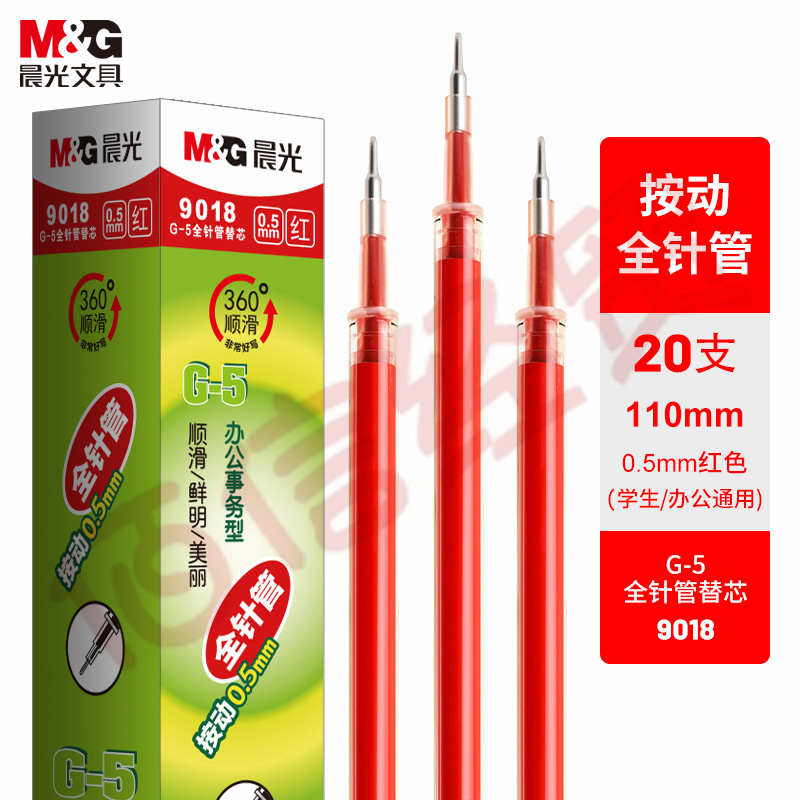 ■晨光0.5mm红色中性笔替芯-- G-5全针管系列- 20支/盒9018C 自营