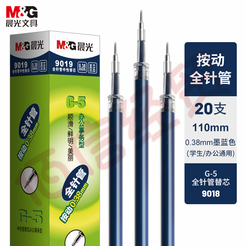 ■晨光墨蓝色0.38mm中性笔替芯-- G-5全针管水笔替换芯 20支/盒9019B1 自营