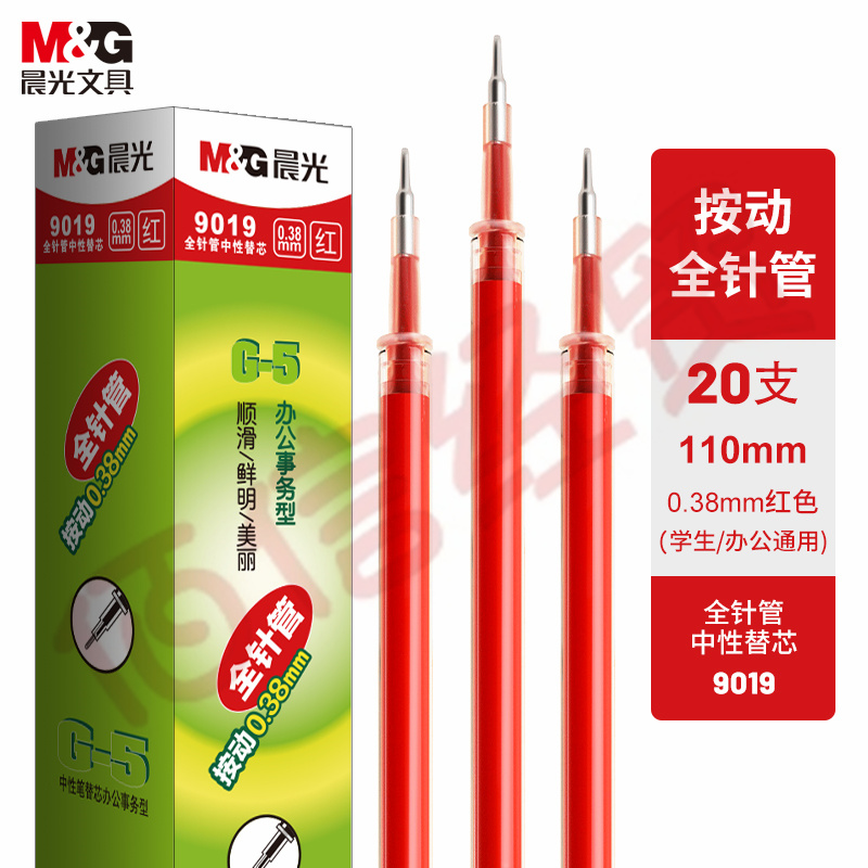 ■晨光0.38mm红色中性笔替芯-- G-5全针管系列水笔芯 20支/盒9019C 自营