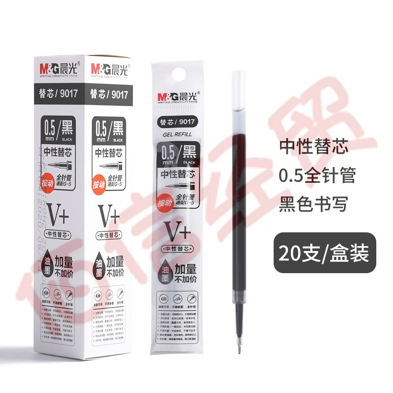 ■晨光优品系列速干中性笔芯0.5按动子弹头替芯G-5升级版 9017替芯V+全针管黑色20支 自营