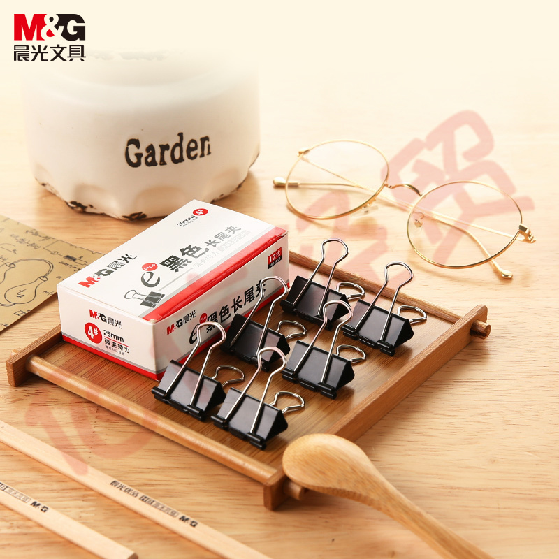 晨光Eplus黑色长尾夹25mm(盒装)ABS92729 自营